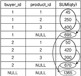 [DBMS 강의 - 12] 집계 연산자 ROLLUP 연산자 - GROUP BY 절의 일부로 사용되어, 집계 값을 요약하는데 사용된다. - 사용 구문은 다음과 같다. GROUP BY ROLLUP ( simple_group_by_item [ , ...n ] ) - simple_group_by_item : 단순 GROUP BY 집계 행뿐만 아니라, 우측에서 좌측으로 집계 값들을 요약한 추가적인 행을 만들어 준다. - ROLLUP으로 요약된 행의 해당 열 값은 NULL이 된다. - 순서는 ROLLUP 결과와 결과 집합의 행 수에 영향을 미친다. - 개념도는 다음과 같다. 위의 개념도를 쿼리를 이용하여 구현하면 다음과 같다. simple_group_by_item 들인 buyer_id, product_id에 대해 우측(product_id)에서 좌측(bu.. 더보기 이전 1 ··· 27 28 29 30 31 32 33 ··· 144 다음